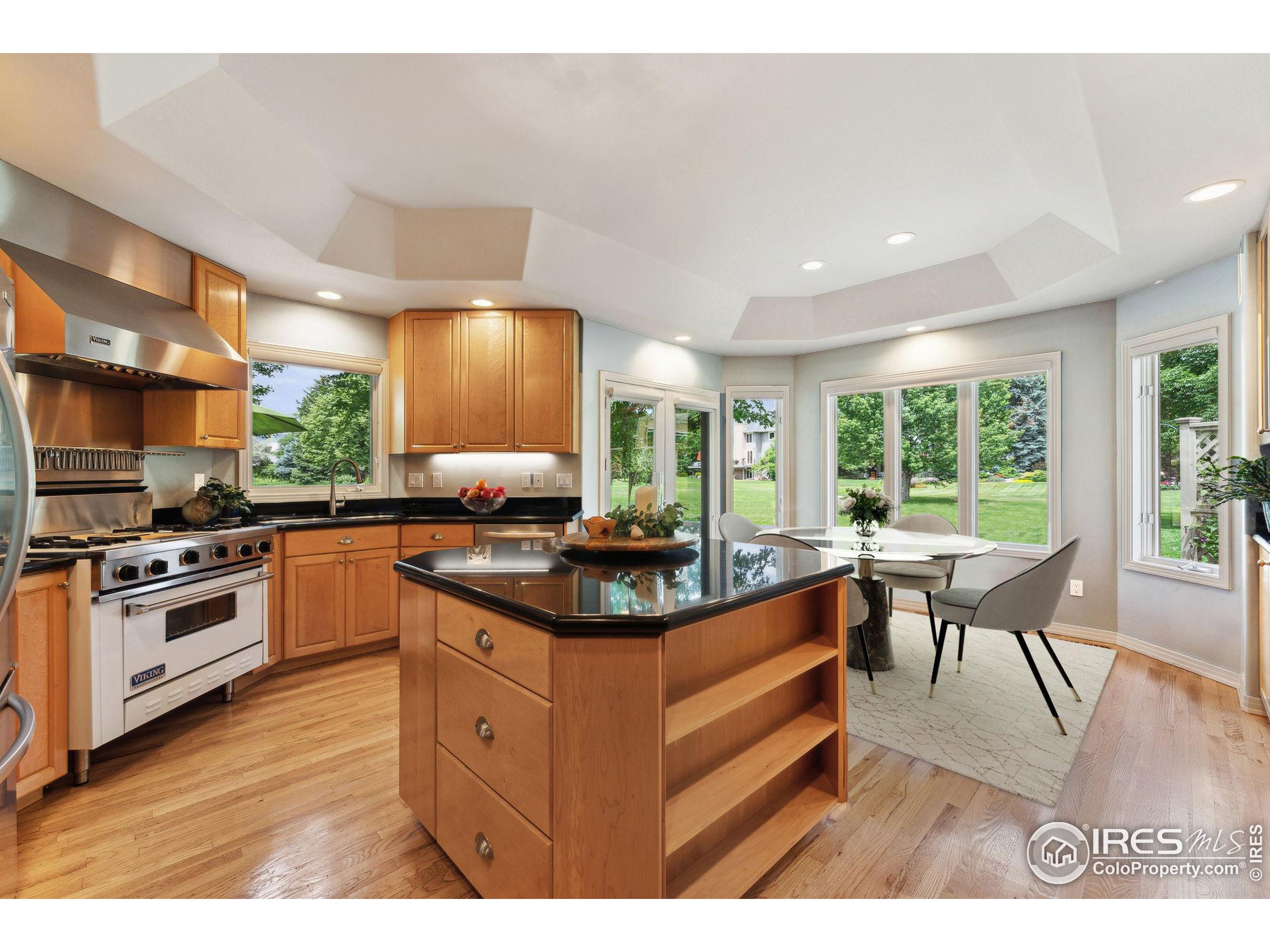 Experience One-Level Living in North Boulder. The home is perfectly situated on a premier lot backing to a privately owned neighborhood park. This exceptional custom built residence exemplifies the best of single-story living, with views from all rooms of the natural outdoor setting. Featuring a split floor plan with two bedroom suites with private baths and walk in closets, a versatile 3rd bedroom with walk-in closet that currently serves as a TV room/office w/ french doors. Don't miss the oversized three car garage. Meticulously maintained and easy to care for or lock up and leave with minimal effort. Flooded with natural light, the high ceilings throughout and expansive windows create a seamless connection between indoor and outdoor spaces, enhancing the homes airy, open ambiance. The eat-in kitchen is equipped a center island, pantry, stainless steel appliances, a White Viking gas stove top oven and hood, and granite countertops. The informal eat-in setting in the kitchen offers serene views of the seasonal pond in the park from the kitchen sink or dining. Outside the spacious deck spans the entire back side of the home, ideal for year-round enjoyment. The home boasts additional amenities, including forced air heating, air conditioning, custom built-ins, walk-in closets, and a future spot for enclosing the side yard for a possible dog run. A workshop nook and large cedar closet in the garage for overflow storage with an easily accessible attic for storing seasonal items. The location is accessible to miles of bike & walking trails for those seeking close proximity to Boulder's downtown vibrant amenities. Enjoy the best of North Boulder living.