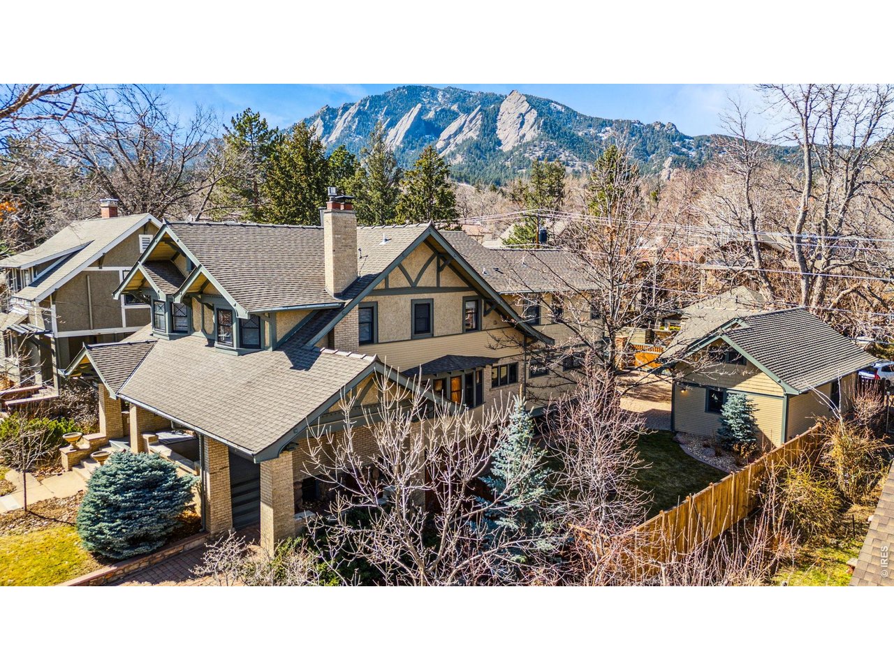 NEW ROOF & NEW VIEWS of the nearby iconic Flatirons are just one of the things we love about this traditional Craftsman home in the University Place neighborhood. Situated on a spacious triple lot, this 5 bedroom, 4 bath home boasts a detached three car garage and inviting covered front porch. Meticulous craftsmanship in one of Boulder's most walkable, scenic locations positioned between Chautauqua Park and the University of Colorado, Boulder. Step inside to discover details like beamed ceilings, bay windows, hardwood floors, and a working wood-burning living room fireplace paired effortlessly with an updated kitchen, bathrooms, and dual zone heating and cooling for contemporary comfort. The heart of the home was expanded in a full renovation in 2000, with the addition of the spacious great room, and the primary suite above. Access to a west-facing backyard oasis is ideal for entertaining - with a built-in gas grill, outdoor bar, fire pit, stone patio, fountain feature and side yard. Upstairs, find four large light-filled bedrooms, and a shared deck off the primary suite. The third floor is a partially finished full flex space offering additional storage and a large cedar closet room. On the lower walkout garden level, a separate guest retreat includes the 5th bedroom, 3/4 bath, small kitchenette, and electric fireplace-plus and the main laundry room. Host events or guests by entertaining in the unique speakeasy-style media room. Features: exposed stone and brick and a secondary separate entrance. The detached three-car garage is accessed off the alley with a private electric gate, additional storage above the garage bays. (ADU Feasibility Study by Melton Design available upon request). Off street parking in the front is offered with a driveway & "porte-cochere". Unbeatable Boulder location walkable to CU Boulder, Chautauqua Park, downtown restaurants, and future Sundance Film Festival venues. Easy access to US-36, Hwy 93, and Denver International Airport.